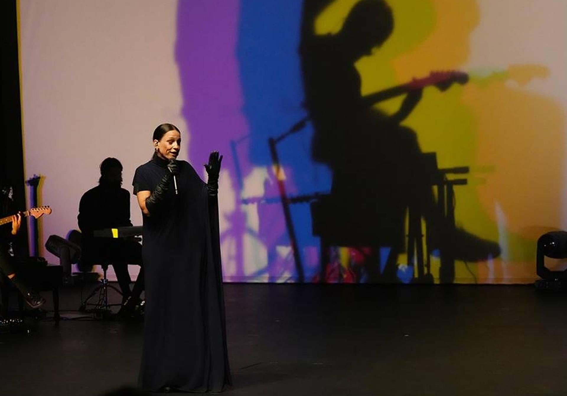 La luz creó la atmósfera necesaria para dejarse atrapar, absorber, por la fadista. El arranque con el foco a su espalda en 'O quarto', a la segunda, 'As flores', el foco abriéndose y ella cantando como si floreciera, a la tercera, 'As fontes', con sólo su cabecita linda iluminada y flotante cual trofeo entomológico… También llamaron la atención las sombras de sus cinco acompañantes en la pared, otros momentos con únicamente una raya (ora horizontal, ora vertical atravesando a la cantante con su luz), o sencillos colores ocupando todo el fondo: fucsia, azul, verde, ese rojo insidioso…