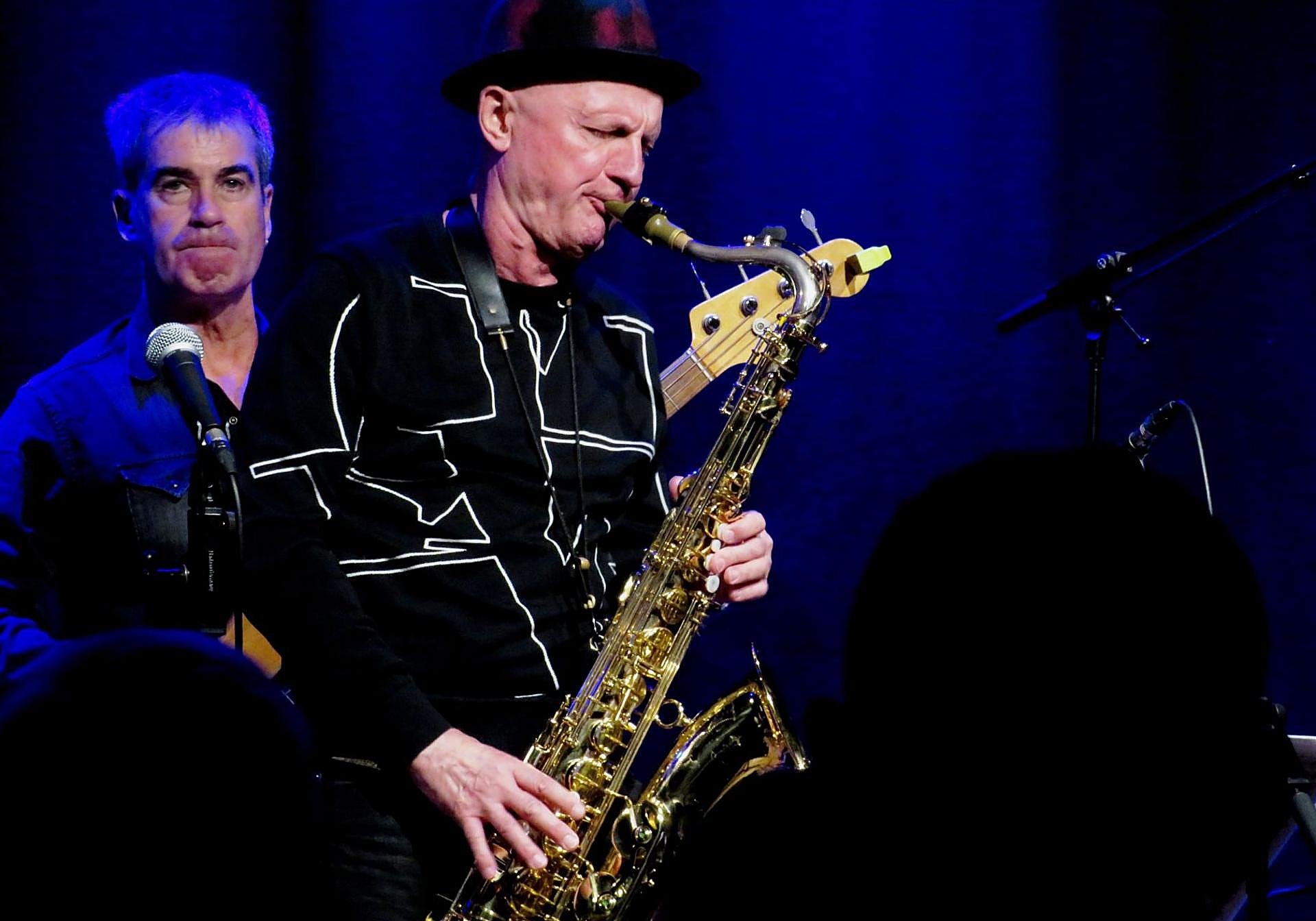 Al lío: el primer pase fue de 4 temas en 50 minutos, contando como sólo uno el primero, 'Viuda negra', abierto por una intro a solas de saxo tenor literalmente magistral, batido por una batería roquista a lo Ángel Celada (alavés, aficionado al jazz y escolta de estrellas como Mecano, Revólver…), y explorador del jazz rock setentero mojado de fusión, que es con lo que empezó el maestro, quien en esta suite cosechó dos ovaciones intercaladas. En el intermedio, Óscar Cine comentó al baterista Urriza que 'Black widow / Viuda negra' había sido apoteósica, y le contestó el navarro: «Andrezj nos ha dicho antes de salir: 'somos una banda de rock, así que dadle caña'».