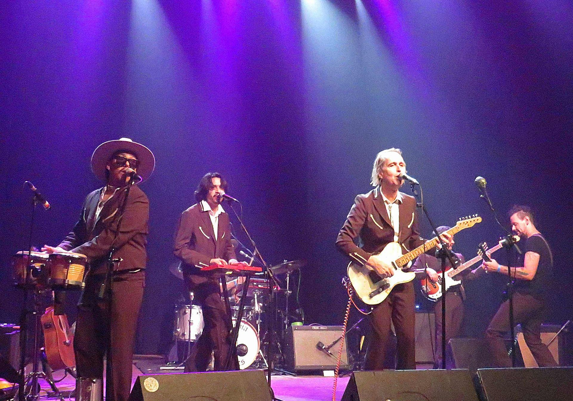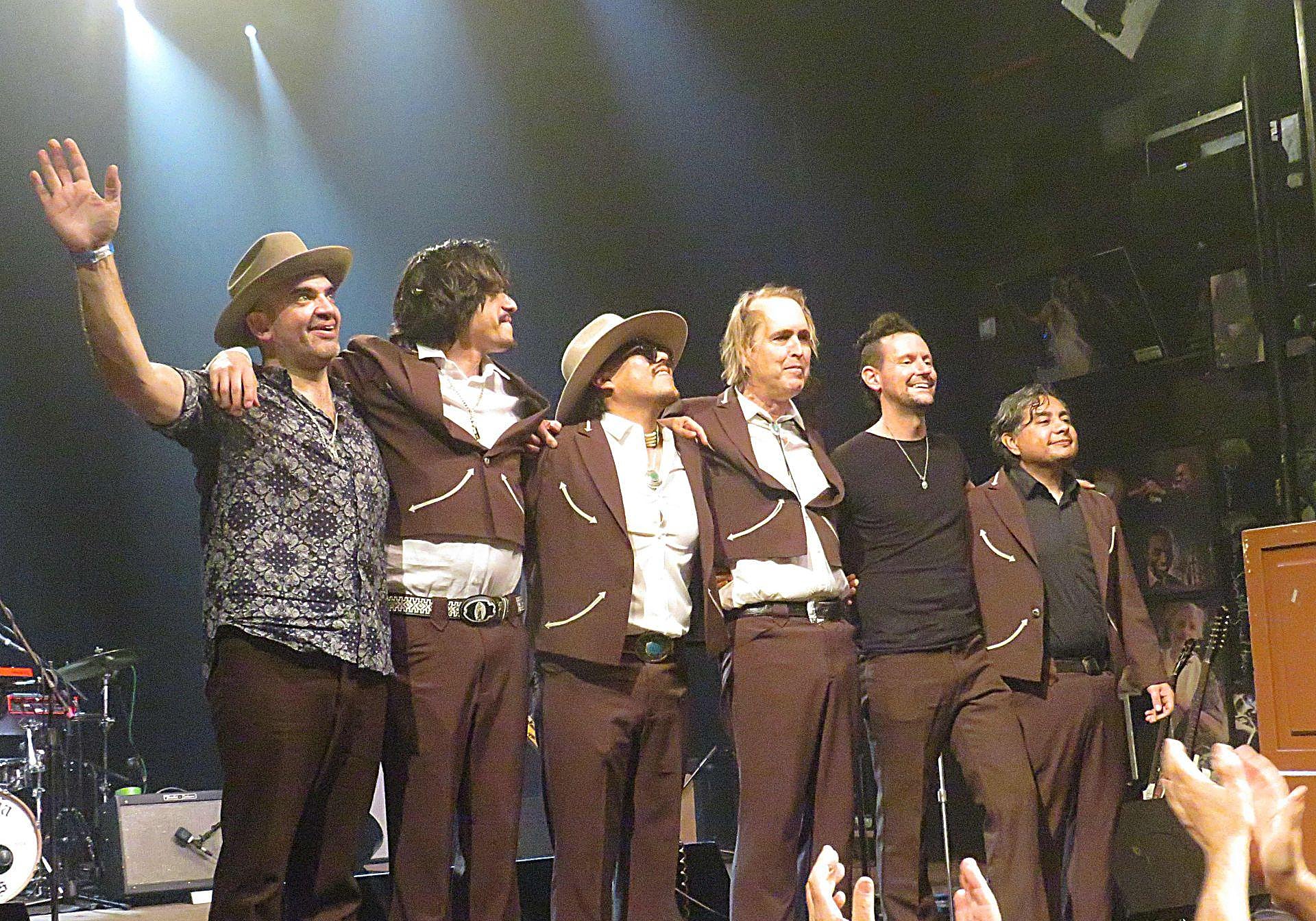 El bolazo sincero, genuino, verídico, con aristas y creciente comenzó con una versión de Eddie Cochran ('C'mon everybody / Aviéntense todos)' y se cerró con el tex-mex juerguista de los años 60 'Wooly bully' de Sam the Sham and the Pharaohs, que fue una fiesta genuina, y en el bis coló una inesperada versión del 'Time ain´t nothing' de Green On Red. Y empero la cumbia del reclamo hubo muchos pasajes menos chicanos, más blancos (un par de rocks muy Lou Reed como 'One lie for me, one for you' y 'Killing machine', el alegre a lo Mink De Ville 'Sugar in the water', el stoniano 'Jesus was a social drinker'…), mestizaje (muy Graham Parker los reggaes 'Same old crime'y 'Wake the dead', más cumbieros en disco que en vivo), rock tan dylanita como la estética uniformada de la banda y el sombrero del Profeta ('Wish me luck', 'The left hand and the rigght hand'), y rocks tan americanos como 'Ford Econoline' y el adiós en falso con el crepuscular, poderoso y épico 'You Did (Bomp Shooby Dooby Bomp)', el tema 18º, la cima de la cita, con un punteo muy sentido de Chuck Prophet rasgado desde el borde del tablado, espacio que le gustaba invadir a este trovador de segunda fila que nunca falla (y perdón por lo de segunda fila).