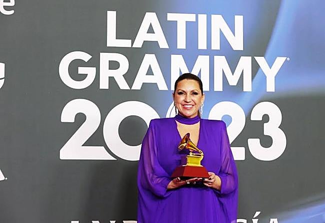 La malagueña salerosa Pasión Vega, quien en la imagen capturada el pasado jueves 16 de noviembre aparece posando como invitada (no nominada, ni premiada) en la reciente ceremonia de los Latin Grammy celebrada en Sevilla, dio en la Semana Grande bilbaína de 2022 uno de los mejores conciertos del año, al aire libre y a la vera del Guggenheim. Año y pico después regresa con un espectáculo especial, un concierto teatralizado, dedicado al poeta Lorca, que además se ha editado en disco bajo el mismo título de 'Lorca Sonoro'.