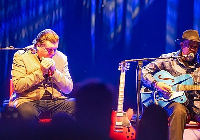 Copiamos la información del festival sobre el inglés, a quien vimos en 2012 en la Sala Azkena y en 2019 en el Café Teatro La Nube de Santutxu: «El increíble zumbido de su harmónica le catapultó a firmar con el sello discográfico holandés V2 Records, haciéndolo compañero de nombres tan conocidos como Mumford & Sons, Adele, Simply Red o Skunk Anansie. Un artista único galardonado con el premio Blues Music Awards 2019 en Memphis. Los medios más prestigiosos de Reino Unido lo describen como 'un show impresionante» con un sonido que le pondrá la piel de gallina'». En la foto que elegimos, reciente, Giles acompaña al bluesman de Chicago John Primer