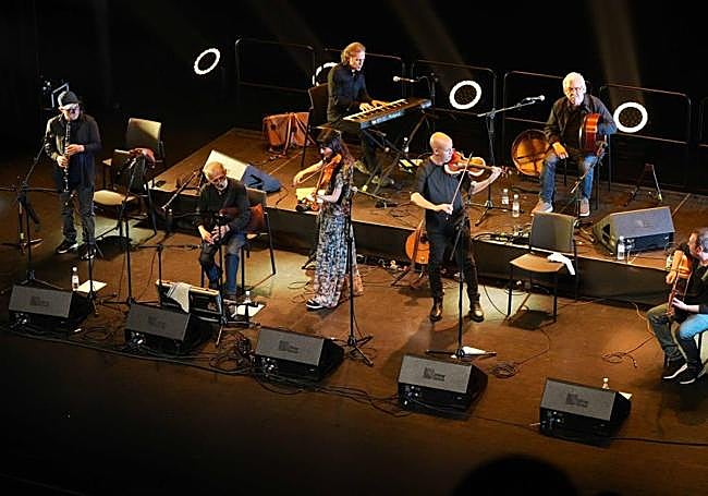 Atención, aficionados al folk, que estos días en que se celebra en Ermua el 20º Folkez Blai (de jueves a domingo, con entrada libre y un montón de conciertos, no todos de concurso), destaca la intervención como grupo invitado de Milladoiro (Santiago de Compostela, 1978), clásico nombre del folk celta español al que el año pasado pudimos catar en el 40º Festival Internacional de Folk de Getxo (de ahí es la foto que usamos), donde pararon en la extensa gira de celebración de sus 45 años de andadura y donde dieron un concierto creciente que rascó palmas y provocó alaridos, un show de 17 piezas en 93 minutos de música al principio en sexteto y luego en septeto, cuando se sumó la joven violinista Ilduara Vicente Franqueira, como demuestra la imagen elegida.