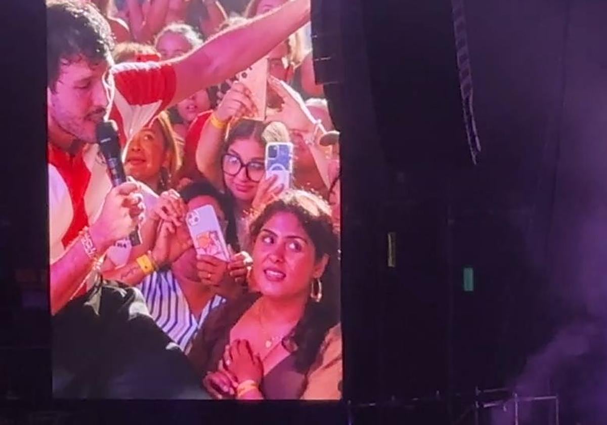 El concierto de Sebastián Yatra este domingo en Bilbao mantuvo la emoción hasta el final. Ya en los bises, y cuando parecía que solo faltaba el fin de fiesta con su éxito 'Vagabundo', el artista colombiano dio una enorme sorpresa a una fan situada en primera fila. Desveló que se llamaba Helena y que había viajado desde Reino Unido para disfrutar del concierto. Se habían saludado en el 'meet&great', en un encuentro con fans antes del concierto, y ella le explicado que le daba pena que no fuera a cantar su canción favorita. Pero tenía solución. «Me he estado acordando mientras cantaba todas las demás. Ya que me acordé, te la canto, amor». Empezó a sonar 'Cómo mirarte' y el cantante animó al personal: «Vamos a demostrarle a Helena, que vino desde Inglaterra, por qué el País Vasco es uno de los mejores lugares del planeta».