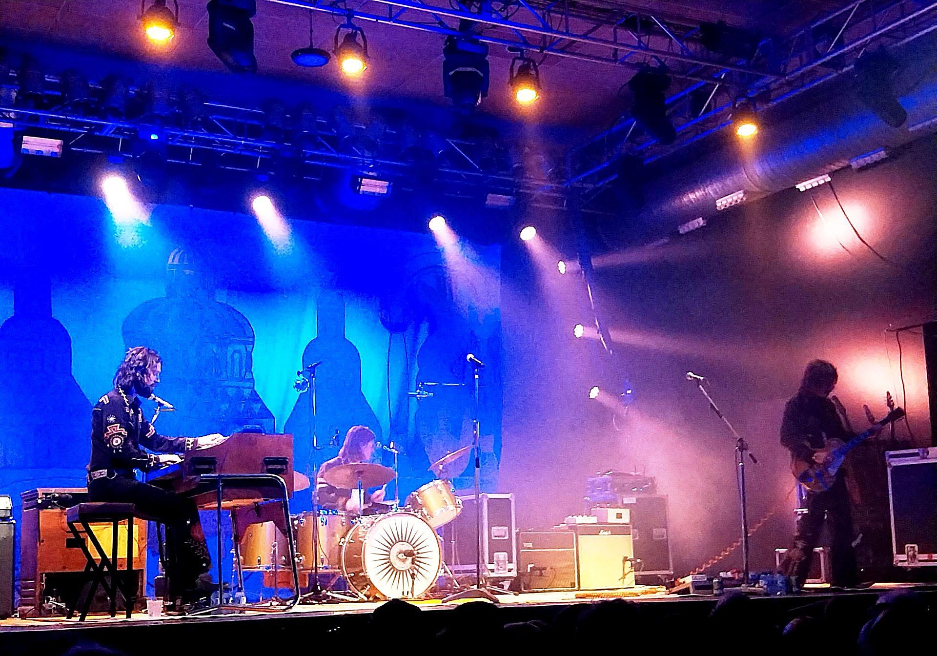 Pues este viernes Pablo van de Poel (guitarra y voz), su hermano Luka van de Poel (batería; «my little brother, el hijoputa», le presentó un par de veces así: oír para creer, porque la primera vez pensamos que habíamos entendido mal) y Robin Piso (teclados; «mi hermanito, pero de diferente mujer», dijo en castellano), los tres flacos y vestidos como tahúres endomingados en la feria del ganado de Bakersfield, dieron un bolazo ardiente de 99 minutos (de 21.18 a 22.47 horas) para 10 temas a menudo unidos y bastantes de ellos en modo suite, o sea desarrollando varios pasajes (dos temas hubo en el bis, que duró 25 minutos).
