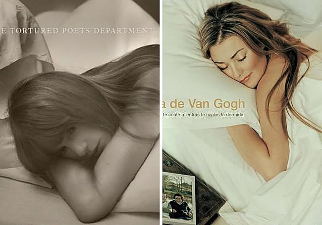 Por partes. El nuevo disco de Swift saldrá en este 2024 bajo el título de 'The tortured poets department'. En la portada aparece la cantante tumbada en una cama de sábanas blancas sobre su lado derecho, con la mirada pérdida. Tiene similitudes con la portada de la banda española. Es casi para buscar las siete diferencias. En el disco de La Oreja de Van Gogh, Amaia Montero, exvocalista del grupo, aparece acurrucada en una postura muy similar, aunque utilizando la almohada, en una cama muy parecida. Tiene los ojos cerrados y está al lado de una mesita junto a la foto del grupo y una margarita en un vaso de agua. En ese disco se lanzaron temas tan conocidos como 'Rosas', '20 de enero' o 'Puedes contar conmigo'.