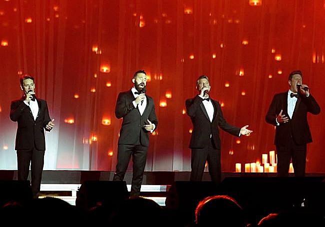Nueve años después de su anterior actuación en el BEC, con 37 minutos de retraso salieron los tres tenores y el barítono internacionales, que cumplieron con su rol elegante y entre la veintena de piezas emocionaron cuando más en 'Ave Maria', 'Blanca Navidad', 'Aleluya' y 'Silent night'