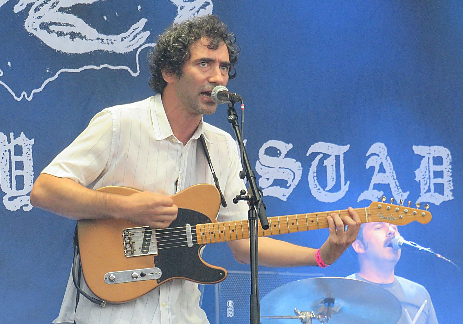 Luego, ante el escenario grande, el público cantó muchas de las canciones de Mikel Erentxun en su gira DD40 (40 años de Duncan Dhu). En quinteto tocó 14 canciones (una no de DD, sino de su carrera en solitario, 'Mañana') en 63 minutos con dos invitados especiales, dos guitarristas cántabros que han trabajado en su banda: Fernando Macaya, que este viernes colaboró incluso cantando una estrofa en 'Capricornio', y Marina Iñesta, con quien cantó la citada 'Mañana' y un coreado 'Esos ojos negros'.