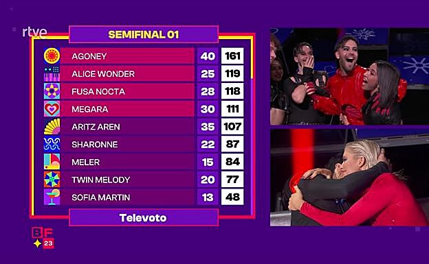 40 puntos para Meler, favoritos en el voto demoscópico. 35 para Agoney