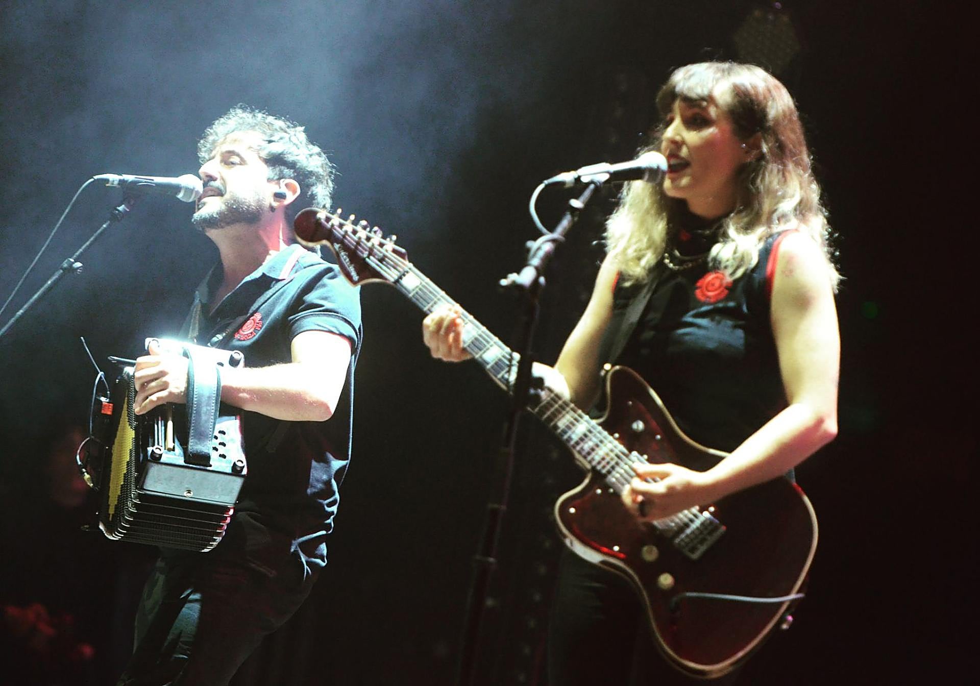 Sí, la banda funcionó bien este viernes. Los tres vientos crearon ambientes de todo tipo (del jazz a lo tétrico), la trikitixa de Xabi Solano funcionó como órgano, melódica (tan propia del reggae) y triki (y cuando tocaba ella sola, un foco cenital la alumbraba protagónica), la batería se complementaba con la percusión, Muguruza se agitaba sin excesos pero con fuerzas de sobra para estar casi tres horas en escena, y las tres mejores canciones fueron 'Nicaragua sandinista' (una juerga con el pabellón cantando a pleno pulmón toda la letra, teatralizándola incluso), 'Bidasoa fundamentalista' (martillazos repetitivos con el yunque del noise), y 'Zu atrapatu arte' (cantado también por todo el mundo y con la fusión manonegrista añadiendo capas al hardcore punk del original).