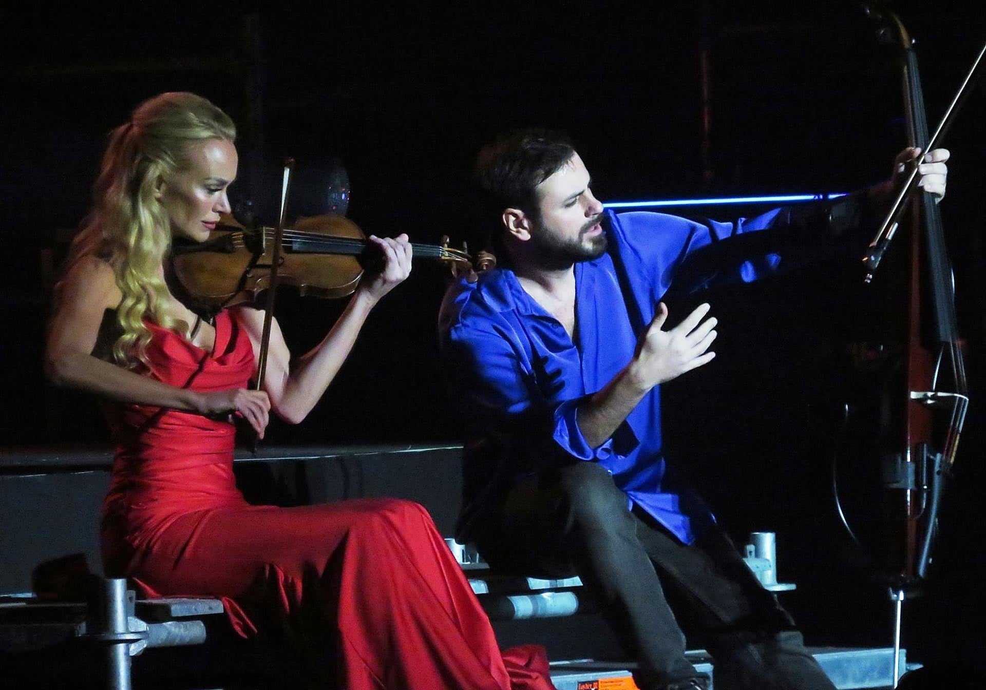 Y tras una pieza en que la violista Carolina entretuvo al respetable (un popurrí con el 'América' de 'West side story' como parte nuclear), reapareció Hauser con otra ropa, con una camisa violeta y brillante, tornasolada, y sí, el show degeneró, se hizo populista, facilón, hasta hortera, pero fue cuando mejor lo pasamos y cuando menos tocó él, que se dedicó más al paripé, al pienso para la peña, a las payasadas, a recorrer a saltos el escenario, a tocar colgándose el chelo de un arnés que parecía para una tabla de lavar. Hum…, si al principio, en lo más clásico, Hauser remitió a Zimmer, en esta larga segunda parte se asemejó al violinista Ara Malikian, que salta y alterna la espectacularidad con los marasmos emotivos, pero en su caso es más musical, toca más tiempo, tiene más enjundia y no abusa de las versiones, y menos de los clásicos actuales del rock.