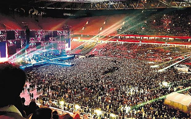 El estreno de su noveno y último disco, 'Infrasoinuak'. El aforo se fue ampliando ante la demanda creciente. Al final y en teoría, en el BEC hubo 10.503 personas: 10.000 entradas de pago, 300 de prensa e invitados, 200 currelas, más los tres músicos. Agradecidos a quienes agotaron el pabellón y motivados por la ocasión especial, los vasconavarros dilataron su show hasta las tres horas con una cuarentena de canciones, un pasaje acústico central muy moroso y la sensación general de rock de estadio. Si fuese una película, se diría que le sobró metraje. Y es que no se puede estar al cien por cien físico durante 180 minutos.