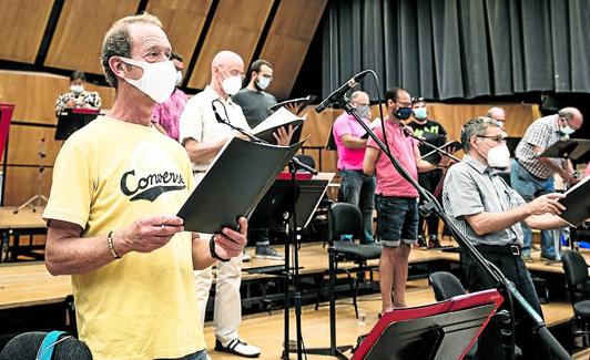 Es toda una hazaña grabar un disco de una pastoral lírica, con solistas, orquesta y coro, en tiempos de pandemia. Más de 90 personas tienen ... que sumar sus esfuerzos para sacar adelante el proyecto. ¿Cómo conseguirlo? ¿Pueden juntarse todos en la misma sala? Evidentemente, no. Hay que trabajar por tandas. Primero, los 45 instrumentistas y 6 cantantes principales se ponen delante de los micrófonos; y más tarde, es el turno de los integrantes de la masa coral (40 personas) que cantan con un auricular puesto, escuchando la música previamente grabada, sin perder la referencia de las pautas del director con la otra oreja. Al final, en la labor de edición, no es nada fácil conseguir que la fusión de unos y otros sea inmaculada, sin que se noten las ‘costuras’.