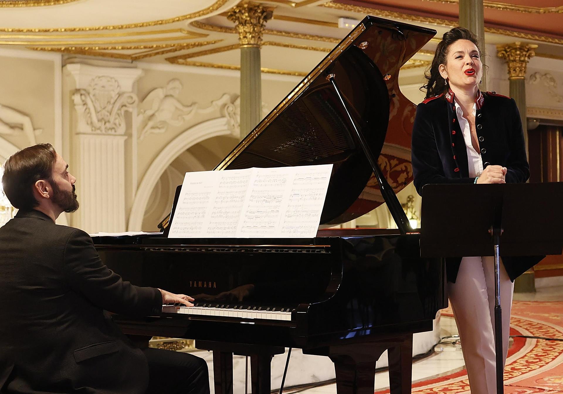 La rueda de prensa en el foyer del Arriaga contó con la asistencia del alcalde, Juan Mari Aburto, que subrayó el valor simbólico de encontrarse en el teatro de referencia de Bilbao. «Este es un proyecto de ciudad. Emociona, además, que nos encontremos tan cerca de donde nació Isasi hace 135 años. Él vino al mundo en El Arenal, el corazón de la villa», detallaba el regidor, a pocos metros del piano donde ya se habían dispuesto las partituras de 'Frühling' (Primavera), 'Es war ein alter König' (Érase una vez un anciano rey) y 'Komm zu mir' (Ve a mí).