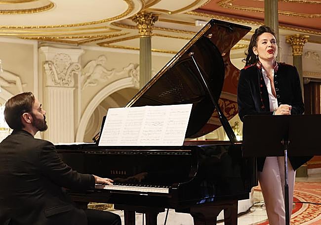 Recién llegada de Santiago de Chile, donde ha arrasado en su debut como Salomé, no se la vio afectada por el 'jet lag'. La soprano ... duranguesa Vanessa Goikoetxea ofreció este miércoles en el foyer del Teatro Arriaga un pequeño aperitivo de su primer disco en solitario, 'Frühling' (IBS Classical), arropada por el pianista Rubén Fernández Aguirre. Es una grabación de 24 canciones, todas ellas con versos de Heinrich Heine. Hay catorce del compositor bilbaíno Andrés Isasi (1890-1940), mientras que las diez restantes son de autores no alemanes tan dispares como Franz Liszt, Charles Ives, Edvard Grieg, Nadia Boulanger...