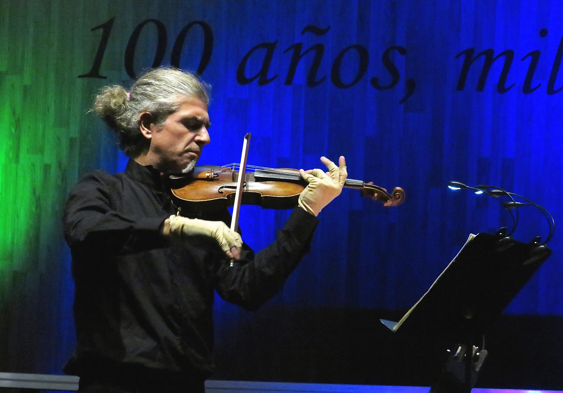 El trío piano-violín-clarinete de ilustres académicos participó en el 32º Ciclo de Música Contemporánea Kuraia, estrenó dos obras y su última pieza la respaldó con imágenes de la película de Chaplin 'Armas al hombro'