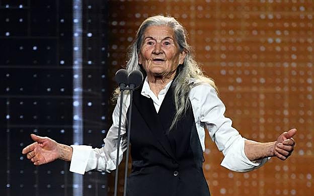 AFP 84 años y una energía envidiable. Benedicta Sánchez se colocaba por primera vez frente a las cámaras con 'Lo que arde' y ayer ganaba el Goya a la mejor actriz revelación. Con una larga melena blanca, la gallega subía al escenario y agradecía a su hija haberle llevado al casting. «Tengo que decirles que la vida te da sorpresas. Esta es una muy grande en toda mi larga existencia», afirmaba emocionada. Agradeció a Oliver Laxe y al equipo el galardón -«No creo que hayan tratado a una princesa mejor que a mí», dijo- y lo dedicó a su tierra Galicia. Abrumada, al final, preguntó: «¿Me puedo ir ya?». Tremenda.