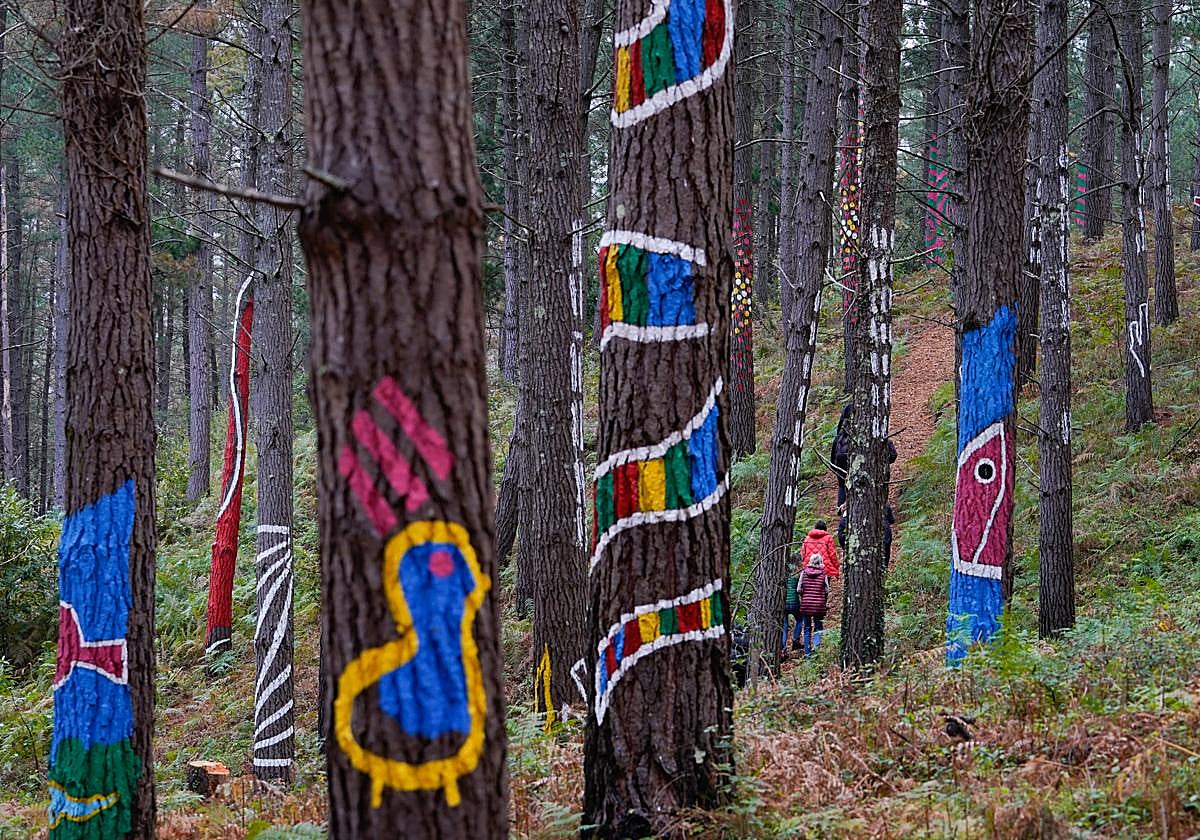 «Es una obra de arte que ha trascendido nuestras fronteras, hasta llegar a ser uno de los iconos culturales de Bizkaia», ha afirmado la diputada general, Elixabete Etxanobe, tras un aurresku acompañado por txalaparta –el instrumento idóneo para un bosque de montaña–, violín y el rumor del viento en las copas de los árboles. Jose Ibarrola, hijo de Agustín y también artista, ha celebrado el «trabajo excepcional» que ha realizado el equipo multidisciplinar encargado de la tarea. «No ha sido fácil, ha habido muchos momentos de interpretación personal de la obra. Las plantaciones de pinos son todas parecidas, pero el terreno no es igual: allí era una loma que descendía por ambos lados y aquí es casi al revés. Había que interpretar y recolocar sin muchas posibilidades de rectificación», ha expuesto. Inevitablemente, ha tenido un recuerdo para su padre, enfermo y retirado de la vida pública: «Me habría gustado mucho que estuviera en condiciones de ver esto, porque le habría encantado y seguro que habría querido seguir pintando: ¡en las restauraciones siempre añadía algo más!».