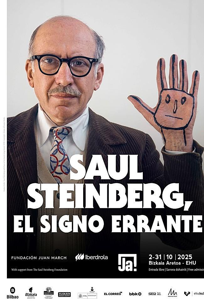 Todo el poderío creativo de Steinberg refulge en la exposición gratuita que abre sus puertas hoy en el Bizkaia Aretoa de Abandoibarra en el marco del festival literario JA!, que calienta motores antes de su arranque oficial la próxima semana con esta muestra que aúna obra y biografía de un artista de condición errante: judío nacido en Rumanía, estudió en la Italia fascista y, huyendo de la persecución racial, terminó recalando en Nueva York, previo paso por República Dominicana.