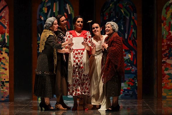 'El jardín de las posibilidades' tuvo otra versión. perfilada tras la publicación de Marta Osoro de una carta de Emilia Llanos, junto al libro de Lola Manjón 'Relaciones de Emilia Llanos y Federico'. Es un espectáculo para un espacio íntimo donde la voz no se diluya (como el fecundo 'espacio escenario' del Arriaga que se les ha quedado pequeño). A cambio hay cosas de agradecer, un programa de mano sobre papel blanco legible a la luz de la sala, sin tintas. Y muchas ideas muy teatrales: los coros gestuales que denotan que cuatro actrices son un solo personaje, indumentarias, transiciones de efecto. Y ante todo un trabajo entregado y entusiasta que el público celebra.