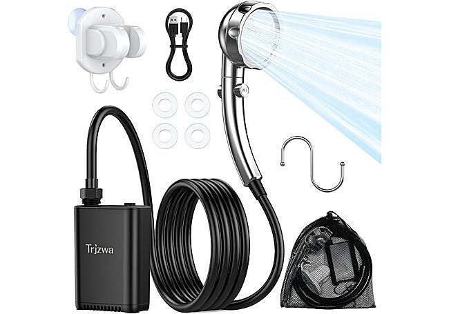 La TRJZWA Ducha Portatil Camping se ha convertido en una opción muy valorada para quienes buscan comodidad e higiene en entornos al aire libre. Su diseño compacto y ligero, con un peso de menos de 1 kg y dimensiones manejables, facilita su transporte en cualquier mochila o maleta. Destaca especialmente por su batería recargable de 2600 mAh que permite varias duchas consecutivas sin necesidad de recarga inmediata, y su carga rápida mediante USB Tipo-C ofrece una ventaja práctica frente a otros modelos del mercado.