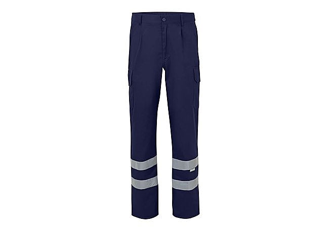 Gracias a su confección en mezcla de algodón y poliéster, el pantalón multibolsillos VELILLA P1591M presenta seis bolsillos funcionales y detalles reflectantes en el bajo. El cierre central con cremallera y botón, junto con la cinturilla elástica, aporta comodidad y ajuste, mientras que la certificación EN 17353 B3 garantiza visibilidad y seguridad en entornos laborales exigentes.