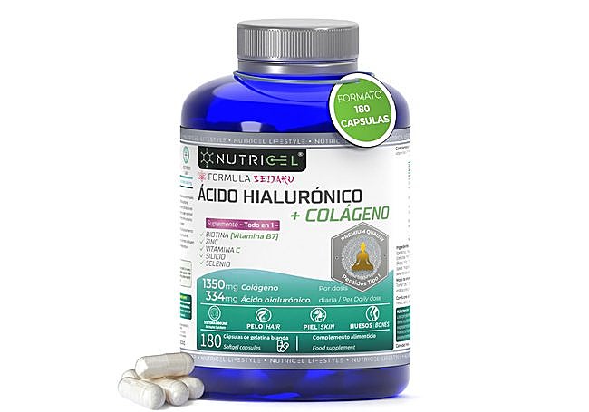 Si buscas una fórmula completa para el cuidado diario, este colágeno hidrolizado puro de NUTRICEL en cápsulas combina ácido hialurónico, biotina, zinc y vitamina C natural. El envase de 180 cápsulas ofrece un suministro cómodo para hasta tres meses, adaptándose fácilmente a cualquier rutina.