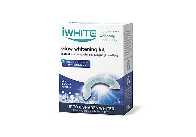 Durante el día, las partículas de diamante de iWhite Glow reflejan la luz y realzan el blanco natural de los dientes, mientras que su tecnología con PAP y calcio elimina manchas desde la primera aplicación. El formato incluye diez moldes prellenados, finos y flexibles, que se adaptan cómodamente para cubrir toda la superficie dental, incluso en dientes sensibles.