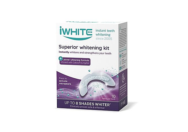 Con tecnología de triple acción, el kit iWhite Superior ofrece un blanqueamiento dental profesional en casa. Incluye diez moldes precargados que se adaptan fácilmente y permiten aclarar los dientes hasta ocho tonos en solo veinte minutos, fortaleciendo y restaurando el esmalte gracias a los microcristales de hidroxiapatita y calcio.