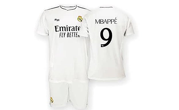 Si tu hijo te ha salido merengón, aquí tienes este conjunto de la primera equipación del Real Madrid con diseño oficial y el dorsal nº9 de Mbappé. Está ahora a un precio de 24,99€ y tiene un descuento del 50% para niños de 4 años. Pero, si quieres otras tallas, también tienen otros descuentos muy golosos.