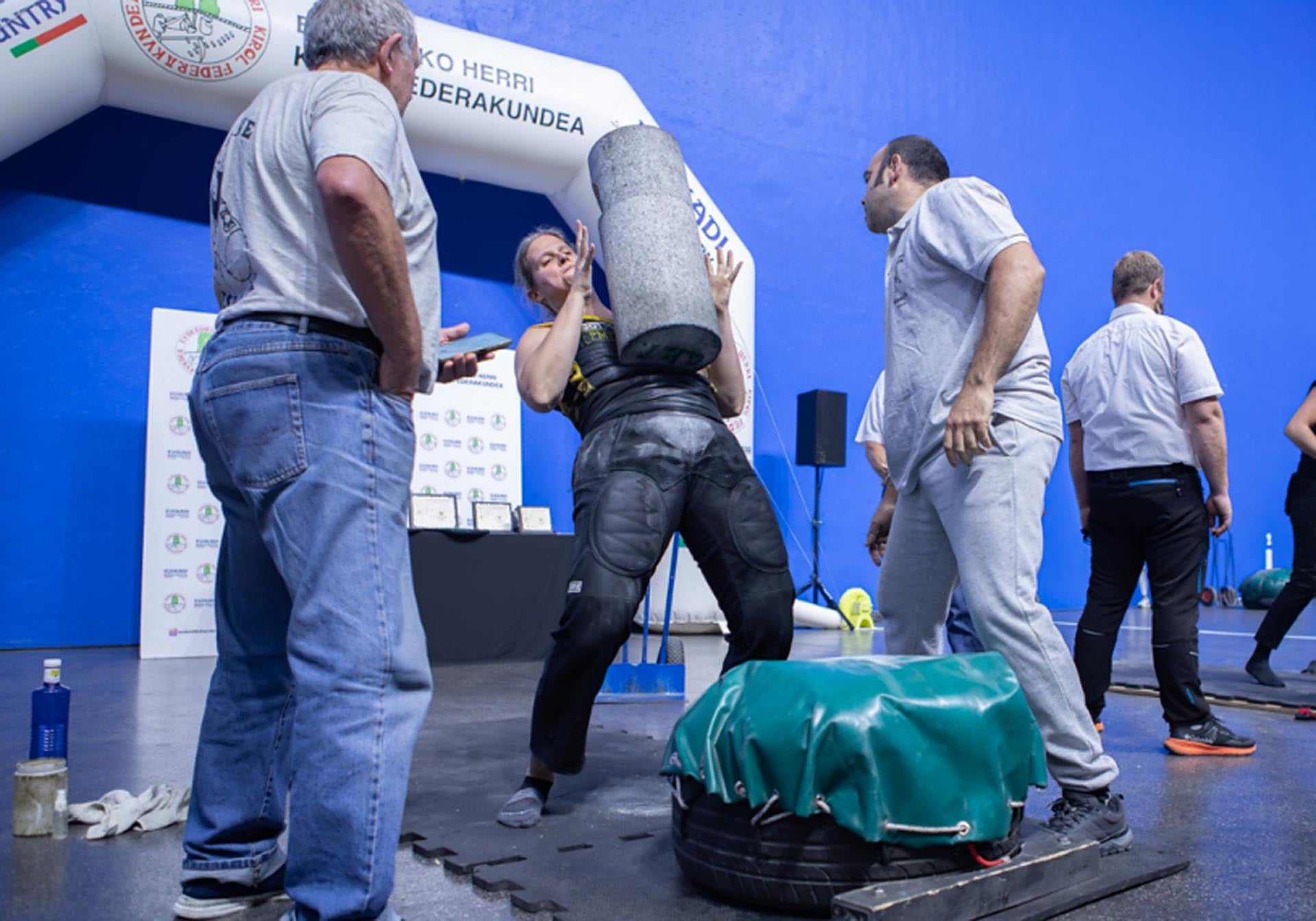 No fue ni de lejos una victoria fácil. Compitió contra otras 7 harrijasotzailes que levantaron la cilíndrica de 75 kilos, el cubo de 62,5 y la esfera de 62,5 en tandas de tres minutos, en un ambiente de mucho calor -el frontón donde se celebraban las prueba era cerrado-. Allí, la jefa de la Unidad de Grandes Quemados de Cruces levantó un total de 5.387,5 kilos.