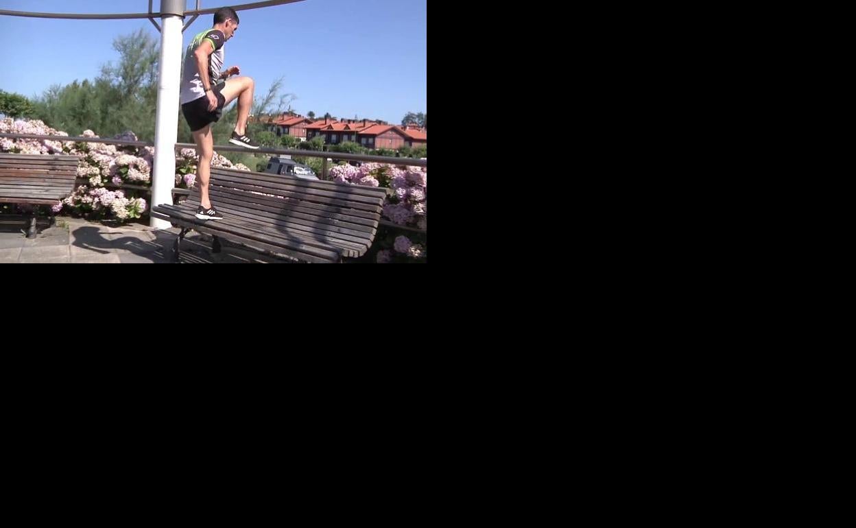 El entrenador de atletismo Imanol Loizaga muestra varios ejercicios que se pueden realizar en un simple banco o parque que te ayudarán a rendir más y a prevenir lesiones
