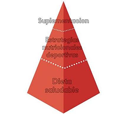 Muchos se sorprenden cuando el profesional habla del sentido común y se vuelven a casa sin ningún suplemento en su plan nutricional. Y nada más lejos de la realidad, ya que aún existiendo suplementación o ayudas ergo génicas para la mejora del rendimiento o de la recuperación, solo las consideraríamos en situaciones muy concretas, y por supuesto una vez que se haya gestionado bien la alimentación en su conjunto. Es importante recordar la pirámide de la alimentación para mejorar el rendimiento deportivo. Como veréis, la suplementación queda en la punta del iceberg, siendo la alimentación del día día la base de ella.