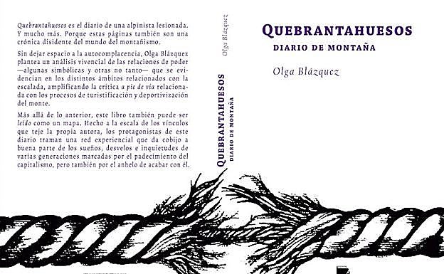 La madrileña Olga Blázquez, amante de la escalada, escribe 'Quebrantahuesos', un diario de una lesión pero también una crónica disidente del mundo del montañismo. La autora de otros títulos como 'Viajar más allá' (Chiado Editorial, 2015) y 'Cartografías nómadas' (Ediciones Desnivel, 2017) observa críticamente el modo en que hoy en día se practica el montañismo y analiza la deportivización y turistificación del monte, la obsesión con el cronómetro, la cima y la dificultad y el mito del reto individualista. Blázquez se define como una persona «sensible» al entorno de competición, aunque sea amateur, y evita participar priorizando el placer de practicar este deporte a la comparación con los otros.