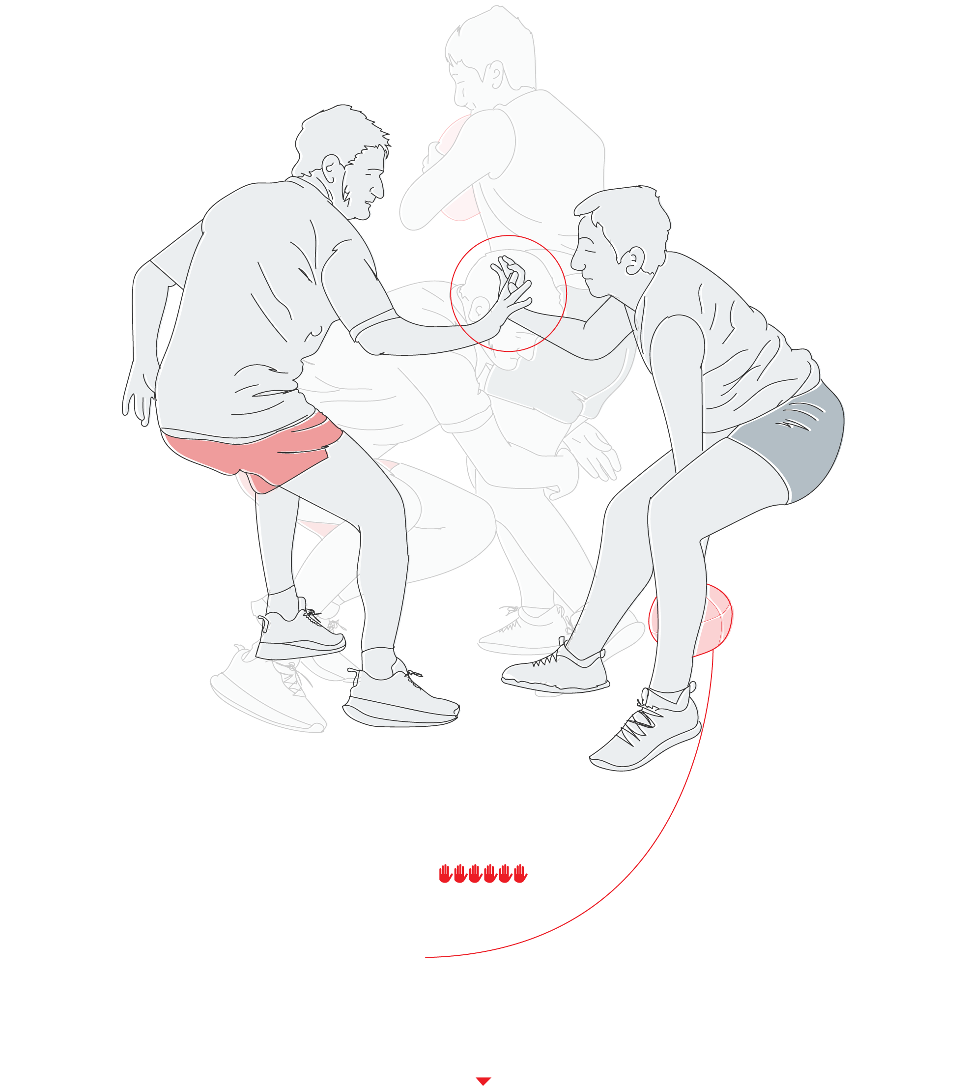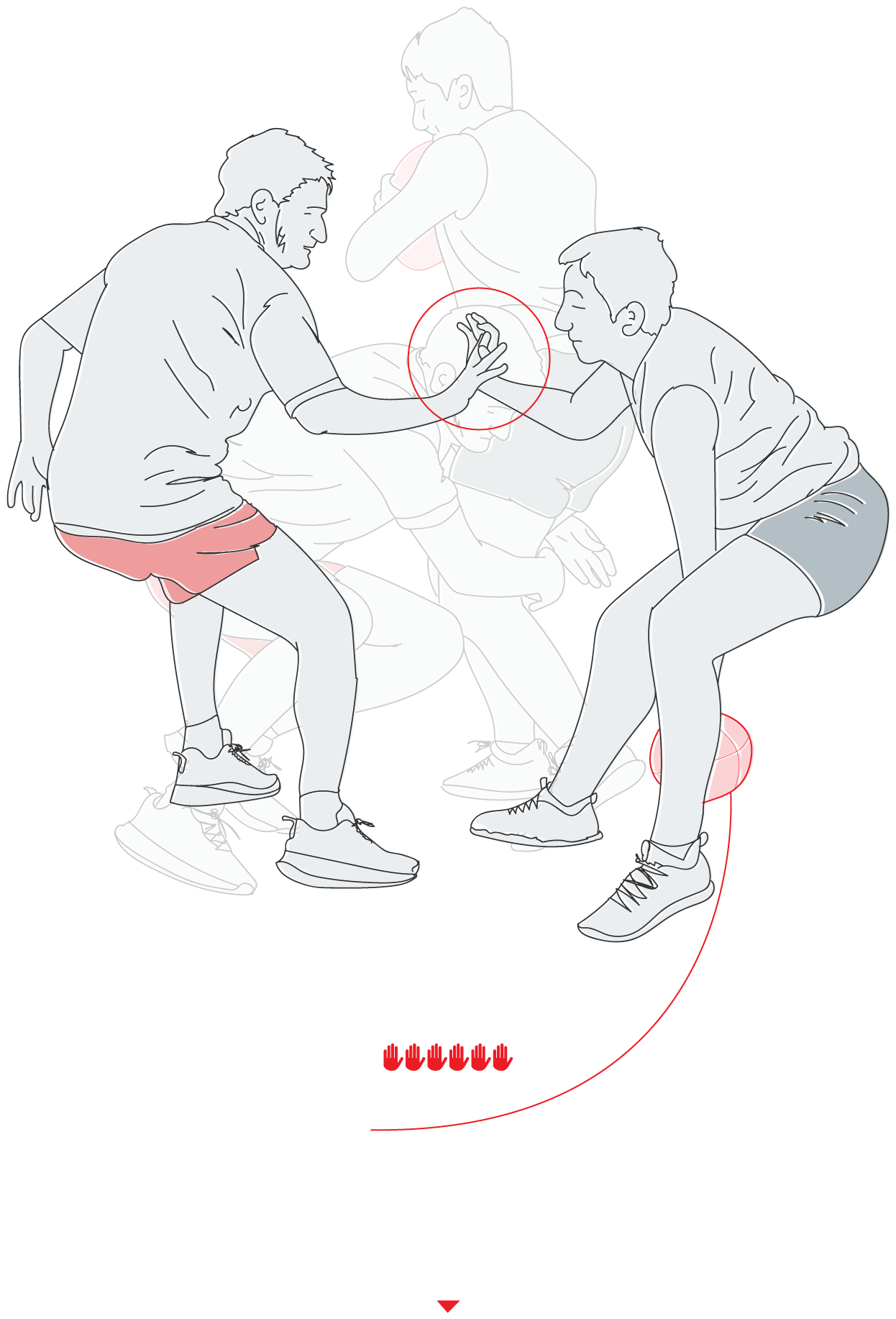 Cuando se produce un tocado, el portador del balón tiene que dejarlo en el suelo, entre sus pies, justo donde se produce el toque