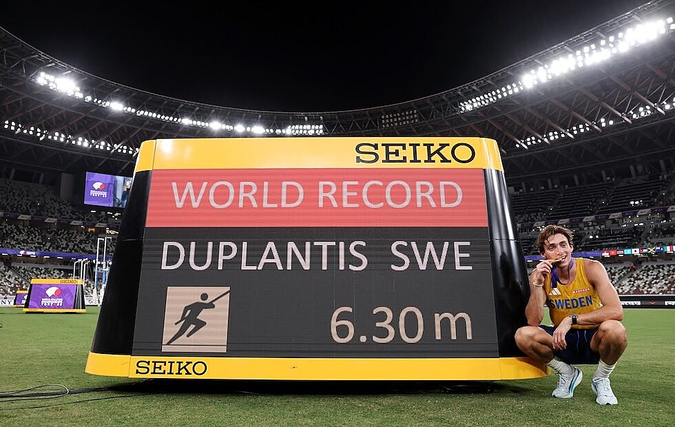 Después de que el griego Karalis fallara en su último intento sobre seis metros y veinte centímetros, Armand Duplantis ya era campeón del mundo al aire libre por tercera vez consecutiva. Fue entonces cuando pidió que situaran el listón a 6,30 metros del suelo, un centímetro por encima de su mejor salto, realizado un mes antes en Budapest. En los dos primeros intentos rozó levemente el listón, primero con las piernas y luego con el pecho, y éste cayó sobre la colchoneta. Aún le quedaba un intento más. Discute posibles ajustes con su padre y entrenador y decide que no quiere cambios, que es la pértiga y la distancia correcta. Es solo cuestión de milímetros. Su siguiente salto supuso un antes y un después en la historia del salto con pértiga, una gesta que ha cambiado la historia de esta especialidad.