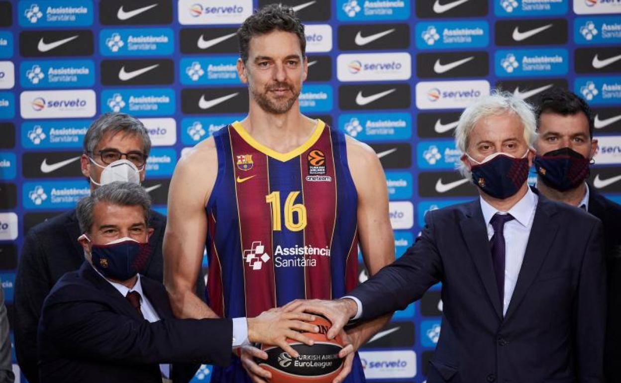 «Vuelvo con la ilusión y la misma ambición con la que me fui hace 20 años. Ya no soy el mismo que era entonces ni tampoco el de hace 10 años, pero sigo siendo un jugador especial», proclamó este jueves Pau Gasol durante su presentación oficial como fichaje del Barça hasta final de temporada. Junto a sus padres, su hermano pequeño Adrià, su mujer y su hija que nació hace medio año y, agasajado por el flamante presidente del club, Joan Laporta, Pau Gasol se enfundó este jueves la camiseta azulgrana con el número '16' por primera vez desde 2011 y expresó su deseo «de volver a jugar pronto», aunque no quiso poder fecha a su reaparición.
