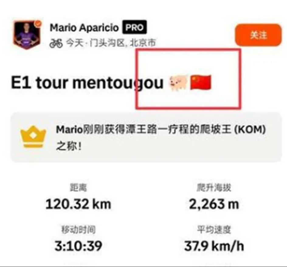 El ciclista Mario Aparicio (Burgos BH) fue expulsado el domingo del Tour de Mentougou, en China, tras concluir la primera de las tres etapas de la carrera por colocar el icono de un cerdo junto a la bandera del país asiático. La polémica publicación, subida al perfil de Strava del corredor, fue borrada pocas horas después tras la polémica generada en las redes sociales de China.