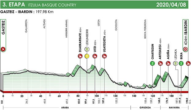Perfil y recorrido de la etapa 3 de la Vuelta al País Vasco 2020