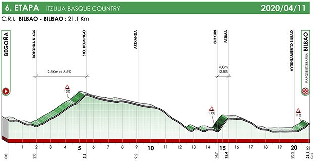 Perfil y recorrido de la etapa 6 de la Vuelta al País Vasco 2020
