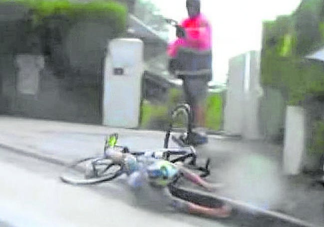 Demasiado rápido, demasiado ambicioso, Iván Romeo ataca bajo el aguacero en el último escalón de la etapa, y acelera por la derecha en la curva, ... que está cuesta abajo, y resbala como una pista de hielo, varios colores de asfalto, piezas de patchwork, parches de última hora porque llega el Tour. Se inclina demasiado, no puede girar el manillar y sigue recto, cae y choca contra el bordillo con violencia. Duele tanto que se pone en pie de inmediato, pero se dobla sobre sí mismo, desgarrado, con el culotte roto. Gregoire, que sigue su estela, cae, se levanta, escanea los daños, monta en la bicicleta y piensa lo duro que es otro día en la oficina. La de los ciclistas es a veces una vida de perros, ya lo decían los clásicos, como Fernando Quevedo: «Si le cambio a Jesucristo la bicicleta por la cruz, me devolverá la bicicleta y se llevará tres cruces para compensar», confesaba después de una etapa del Tour en la que acabó último, a más de cuatro horas de Induráin.