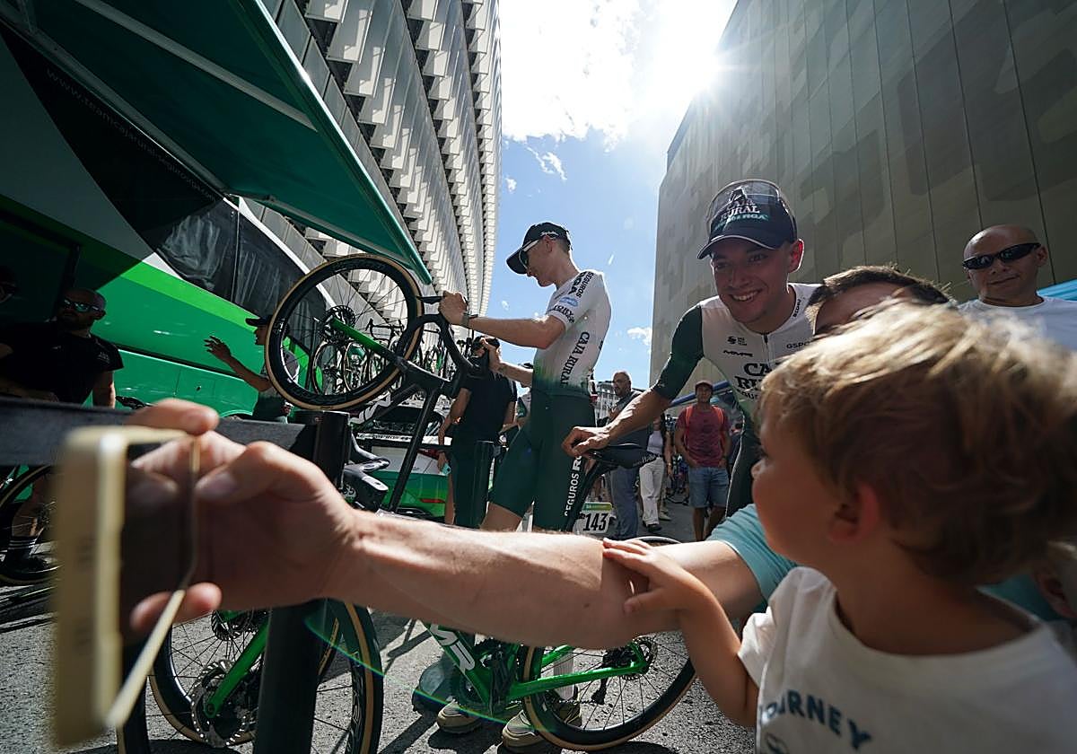 Es un equipo de cantera, modesto, que pelea con los buques insignia de la élite mundial. «Vencer es muy complicado, pero hay que motivarles, convencerles de que tenemos nuestras bazas», comenta Rubén Martínez, director del conjunto de origen navarro. A sus ocho corredores les alimenta la pequeña opción de esa 'casi' misión imposible. Luego, debido a los incidentes de manifestantes propalestinos que impidieron al pelotón alcanzar la meta, no hubo ningún ganador. Y, claro, vencer en un día así es imposible. Sin 'casi'. Pero en la salida todo eran esperanzas.