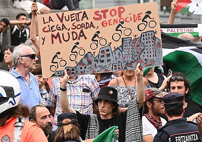 Este final sin final fue una decepción grande para todos los aficionados al ciclismo que se había acercado a Bilbao. Muchos de ellos eran al mismo tiempo muy sensibles a las masacres que Israel está perpetrando en Gaza. Por eso se vivieron momentos de tensión también entre aficionados y manifestantes, unos persuadidos de que deporte y política deben discurrir por caminos paralelos, y otros convencidos de que cualquier protesta es poca para alzar la voz contra las decenas de miles de muertes que está padeciendo el pueblo palestino.
