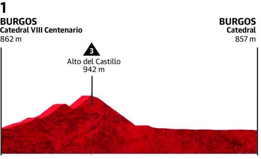 Prólogo: La Catedral de Burgos es el escenario hoy de la salida de la Vuelta 2021. El recorrido urbano comienza en leve subida hacia el alto del Castillo, calificado de tercera categoría, para descender hacia la meta. El último corredor, Roglic, saldrá a las 20.47 horas.