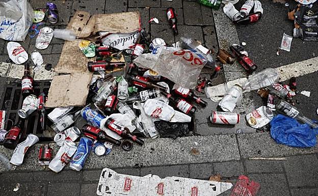 Las vías peatonales se hallaban cubiertas de residuos y de cristales de botellas rotas. Humo, bengalas y tímida presencia policial... Adentrarse por ahí camino de Wembley ya cinco horas antes de que comenzase la gran final entre Inglaterra e Italia, era como internarse entre miles de ultras. Un peligro que la UEFA no debería consentir.