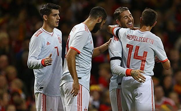 En defensa el asunto parece más claro. Dani Carvajal es indiscutible si las lesiones le respetan -ha ganado sus tres partidos con el asturiano- junto al 'perdonado' Jordi Alba, Iñigo Martínez y obviamente Sergio Ramos. Aunque se rumoreó que el capitán podía dejar el grupo a la llegada del asturiano se ha hecho más fuerte aún en esta etapa posterior al Mundial. Ya es el que más partidos ha ganado en la historia de la selección gracias en parte a su reciente acierto anotador: 7 goles en sus últimos 8 partidos con España.