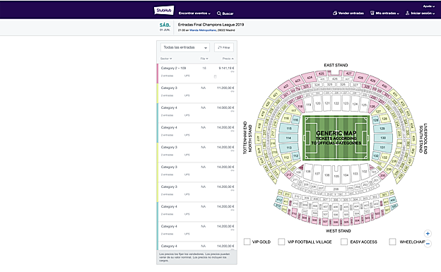 El problema viene cuando se venden más entradas de las que hay disponibles y cuando los precios de éstas suben. Es lo que ha ocurrido ahora. No hay entradas (y aún el viernes seguían teniendo puestas un buen puñado a la venta) y las que hay están por las nubes, por lo que los 'brokers', ante su fallida previsión, han decidido no perder más dinero y dejar de entregar a una de las plataformas de reventa, Stubhub, lo que pone en apuros a la empresa americana perteneciente a eBay. ¿Correrá con las pérdidas de cubrir dichas entradas tal y como promete en sus premisas o habrá anulaciones en masa de entradas? Según ha podido saber este periódico estamos hablando de centenares de afectados. Al contrario que otras plataformas, no han previsto esta situación y, por temas logísticos, no tienen manera efectiva de presionar a los vendedores para que entreguen lo vendido.