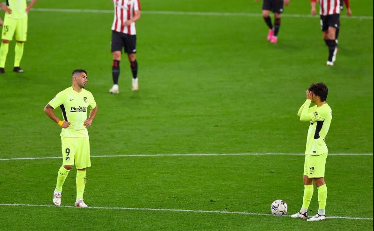 El líder, que puede ceder el primer puesto el jueves, falló en las dos áreas ante el Athletic y fue sepultado por dos cabezazos y su falta de puntería