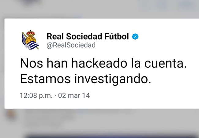 En un formato que evoca al programa 'Equipo de Investigación' de Gloria Serra, se recuerda el suceso. Fue el 3 de marzo de 2014, a las 12.04 horas, en Sevilla -aquí aprovecha el club donostiarra para recordar que allí ganó al Athletic la Copa del Rey-, antes de visitar al Sánchez Pizjuán. Allí se produjo «la gran mentira», define Luis Arconada, jefe de prensa, la situación; en realidad el tuit en el que se decía que habían hackeado la cuenta de la Real. No fue así.