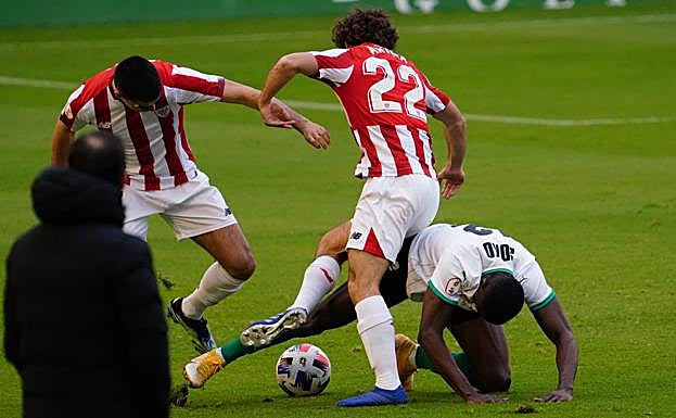 El Racing salió con brío. En el minuto quince, Cejudo botó una falta que Soko remató a la madera entre una nube de defensores rojiblancos. Fue un encuentro en el que Jon Ander Pérez, el exdelantero de Amorebieta, dio mucha guerra. Las cabalgadas de Nico Williams fueron el recurso más letal de los cachorros, con sus avances y recortes, más un lanzamiento de Artola desde la frontal tras un fallo de Ceballos en la línea de tres cuartos. También firmó el filial una jugada de Cabo que no acertó a rematar en última instancia. El Bilbao Athletic se crecía después de un arranque potente del equipo de Solabarrieta, pero la expulsión lo mediatizó todo.