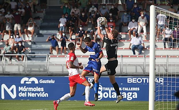 Con tablas en el marcador y el crono avanzando de forma inexorable, el Amorebieta no se conformó. Quería más. Quería dar un golpe sobre la mesa y presenciar sus credenciales derrotando al gigantesco Almería, construido para ascender a base de millones. Metió al equipo de Rubi casi en su área con múltiples centros laterales. Imprecisos muchos de ellos, pero siempre inquietantes para el arquero Makaridze.